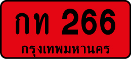 1.ป้ายทะเบียนสีแดงสะท้อนแสง ตัวหนังสือสีดำ ![]() | ใช้สำหรับรถยนต์ที่ยังไม่ได้รับการจดทะเบียน ใช้แบบชั่วคราวก่อนที่จะมีการออกป้ายทะเบียนจริงมาใช้งาน มีอายุการเพียง 30 วันเท่านั้น ซึ่งนี่ก็เป็นที่มาของคำว่า “รถป้ายแดง” นั่นเอง |