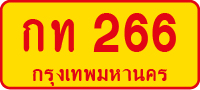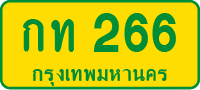 13. ป้ายทะเบียนที่มีพื้นหลังลายกราฟิก | ใช้สำหรับรถยนต์ที่มีการประมูลป้ายทะเบียนตัวเลขชุดพิเศษ ที่ออกโดยกรมขนส่งทางบก สำหรับป้ายทะเบียนในรูปแบบนี้เป็นป้ายทะเบียนที่ทำขึ้นมาเพื่อการประมูลโดยเฉพาะ จึงมีความพิเศษทั้งในเรื่องของการออกแบบและราคา บางครั้งอาจมีเรื่องของเลขทะเบียนรถมงคลต่างๆ ป้ายประเภทนี้ต้องมีการลงทะเบียนเพื่อขอรับป้ายทะเบียนสีและเลขพิเศษเหล่านี้ |