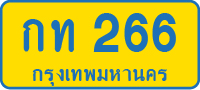 7. ป้ายทะเบียนสีเหลืองสะท้อนแสง ตัวหนังสือสีน้ำเงิน | ใช้สำหรับรถยนต์ 4 ล้อรับจ้างขนาดเล็กรับส่งผู้โดยสารภายในจังหวัด อาทิ รถกะป๊อ เป็นต้น |