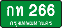 9. ป้ายทะเบียนสีเขียวสะท้อนแสง ตัวหนังสือสีขาว/ดำ | ใช้สำหรับรถบริการทัศนาจร รถบริการให้เช่า เช่น รถลีมูซีนที่สนามบิน เป็นต้น |